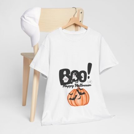 Halloween Boo! Unisex Heavy Cotton Tee, Spooky T-Shirt, Fall Apparel, Halloween Shirts, Pumpkin T-Shirt, Ghost Graphic Tee