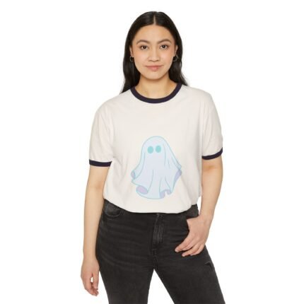 Cute Ghost Unisex Cotton Ringer T-Shirt – Perfect for Halloween, Casual Wear, Gifts, Ghost Lovers, Seasonal Fun
