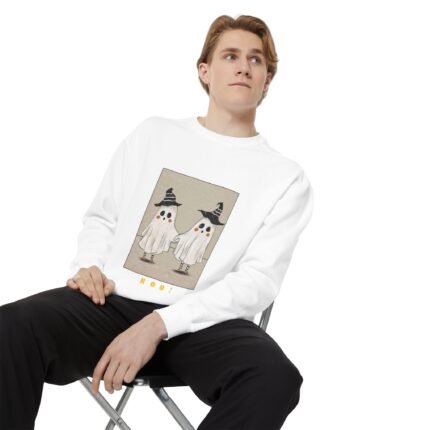 This unisex garment-dyed sweatshirt envelops you in cozy comfort with a touch of playful charm. Featuring a whimsical ghost design