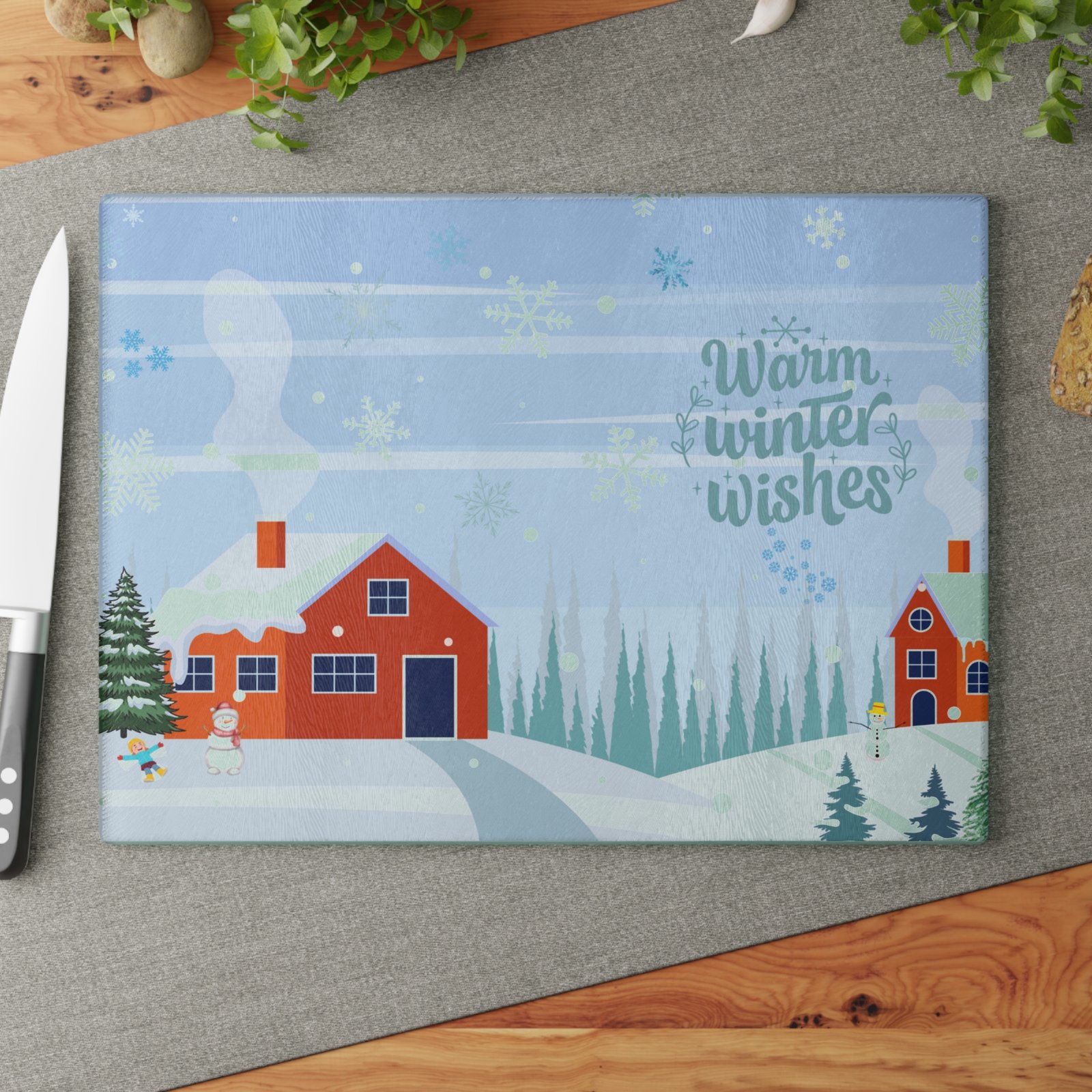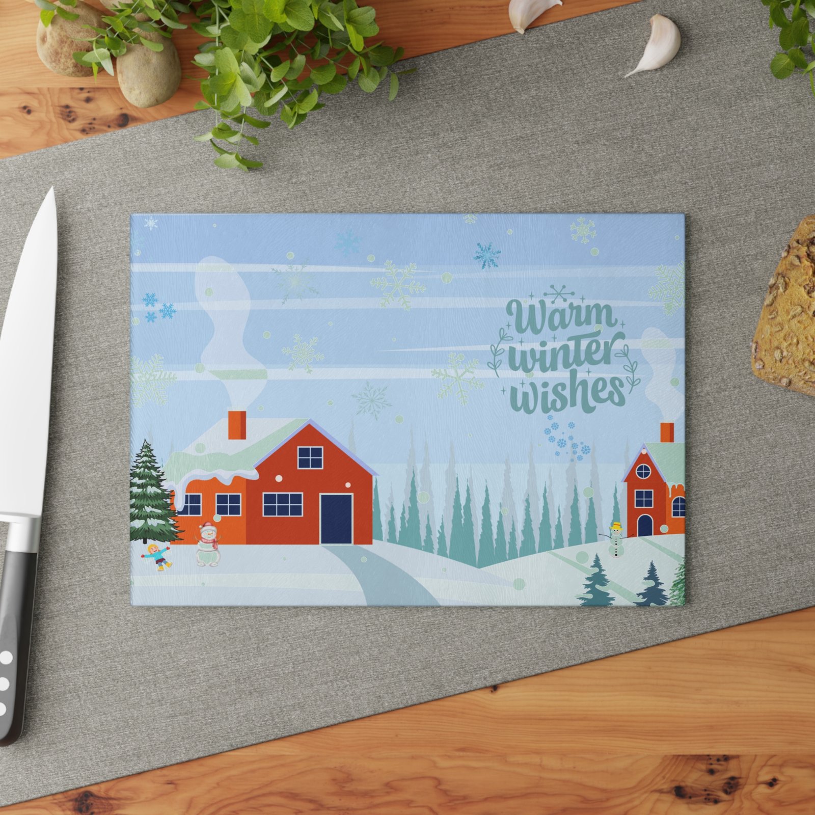 Winter Wonderland Glass Cutting Board, Holiday Kitchen Decor, Gift for Chefs, Seasonal Cooking, Home Kitchen Accessory